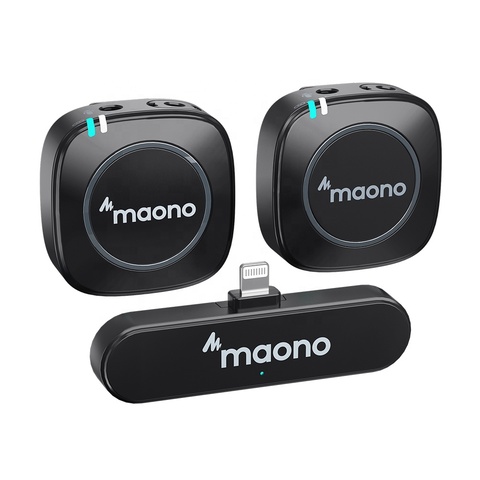 MFi yıldırım kablosuz mikrofon MAONO Mini 2.4G kablosuz mikrofon sistemi ve ses kontrol yaka mikrofonlar